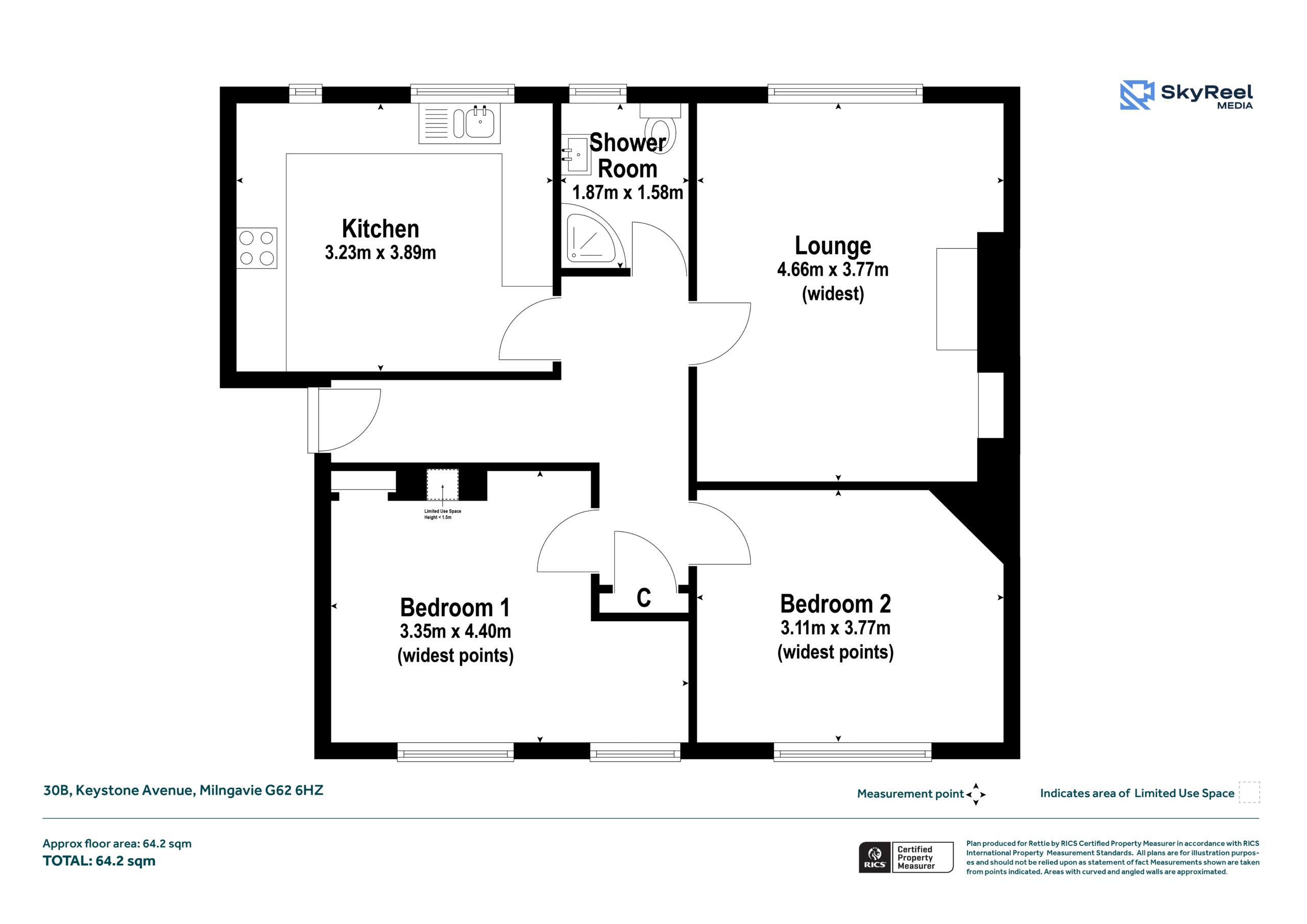 The roof at the eastern half (above 30B, 30A, and the two flats below) was very smartly retiled, we understand, approximately three years ago and the flat had its windows replaced circa 2014 with uPVC framed double glazed units. Central heating is mains gas to which there is a modern Ideal (Logic Combi C30) boiler. The surprisingly spacious kitchen features white Shaker units and is sold with the integrated appliances as seen. The original bathroom has been replaced with a modern three-piece shower room suite, fully tiled.