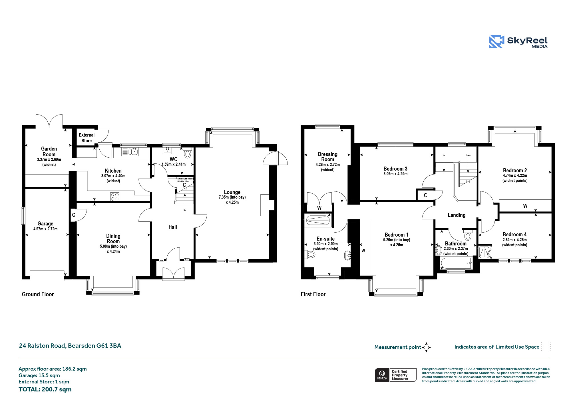 Ralston Road is home to some of the finest homes in Bearsden. No.24 was built by the highly admired builder, John Russell, and is a pre-war villa of handsome lines. Brick built and finished in fresh painted render it has an impressive mansard roof in lovely Rosemary tile along with modern dry-ridge tiles. Apart from a retained stained leaded French door and side window in the lounge, all windows, and French doors, have been replaced with high-quality hardwood framed, double glazed, units. Central heating is mains gas and here the boiler was renewed only in March 2025.
