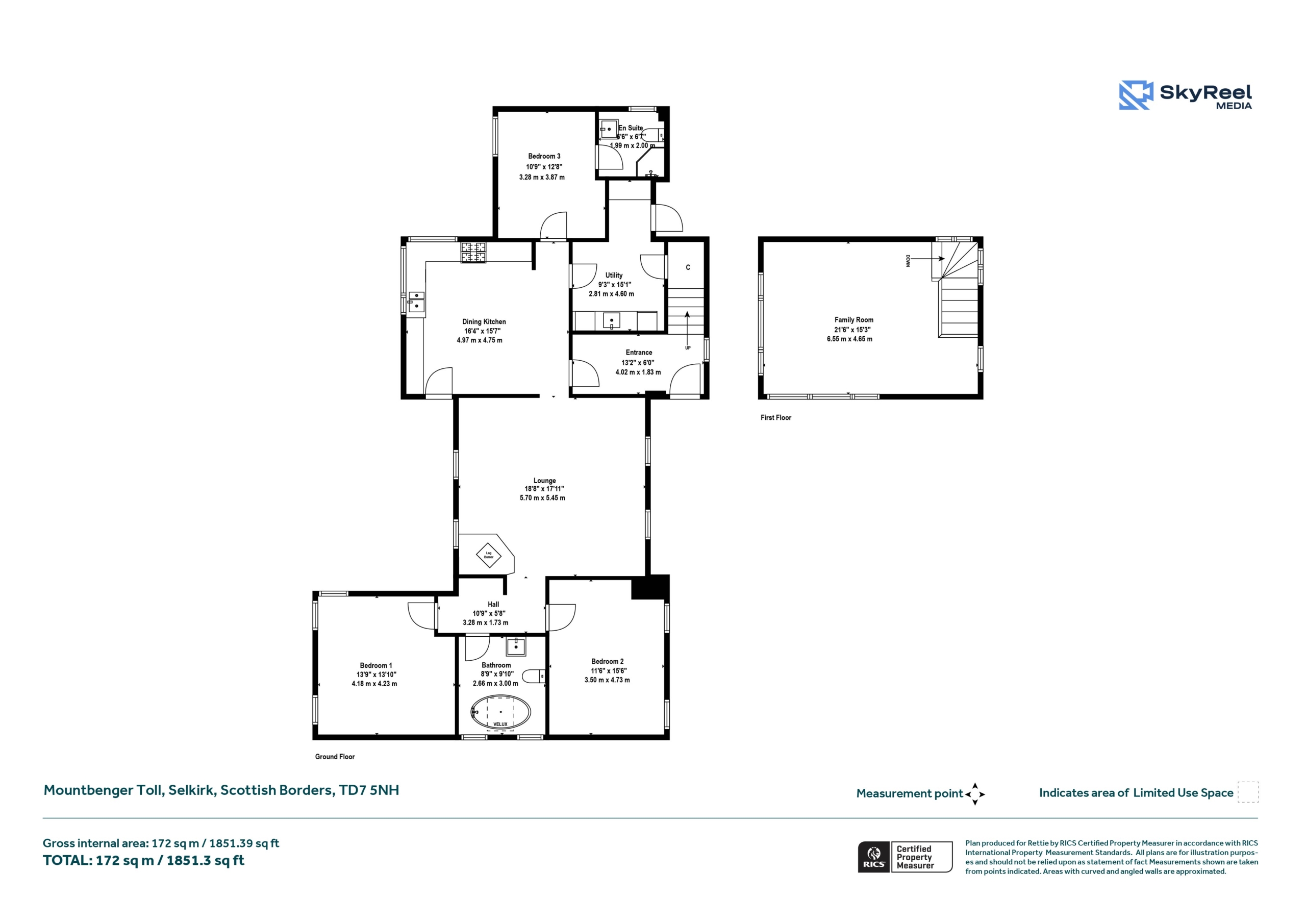 The house opens from a wide hallway into a wonderful dining kitchen; this leads into a lounge which off which a second hallway leads to two generous double bedrooms which share a large bathroom with free standing bath. Completing the ground floor is a capacious utility room, and third bedroom which boasts an en-suite with shower. The first floor houses a generous second sitting room with floor to ceiling glass boasting fine views of the rolling hills.