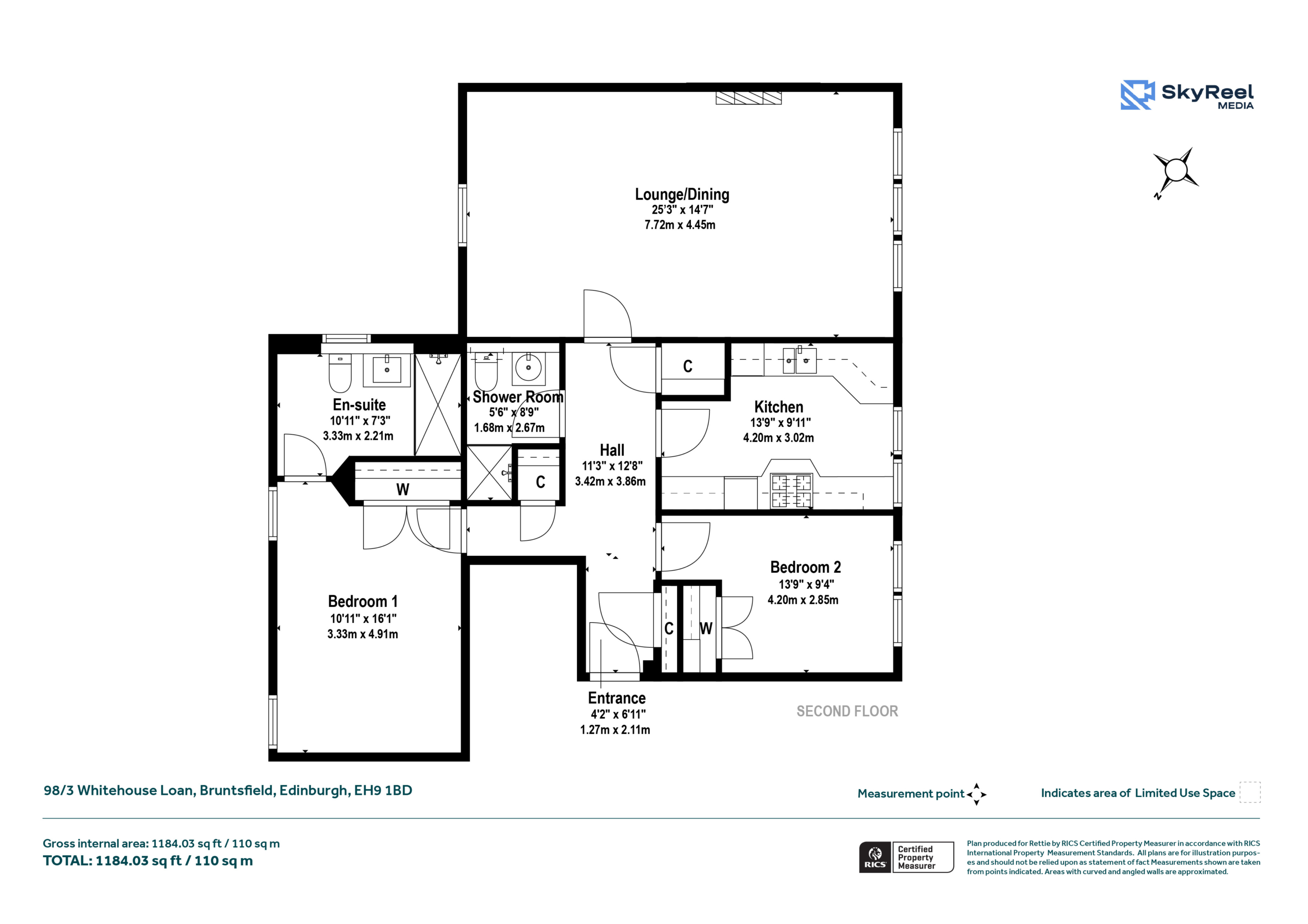 Enjoying an exclusive, leafy setting, 98/3 Whitehouse Loan is a fantastic opportunity to acquire a two bedroom, second floor apartment, converted by the prestigious AMA Homes in the 1990s. Entered via a lift, this 1,184 sq ft apartment comprises a generously proportioned sitting/ dining room, fully equipped kitchen with space for dining table, integrated appliances, two double bedrooms offering built in wardrobes and one with a well sized en suite bathroom. The apartment benefits from a separate shower room, and hall storage cupboard. Externally, the property further benefits from an additional lockable storage cupboard, well-maintained communal gardens and a private parking space.