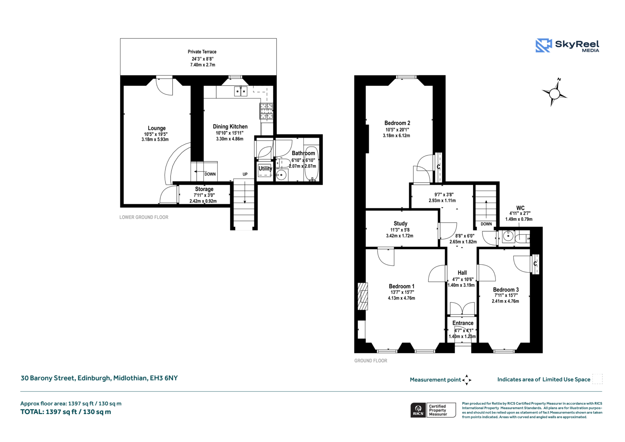 An impressive three-bedroom main door duplex flat with private terrace, set over ground and lower ground floors, in the heart of Edinburgh’s New Town.