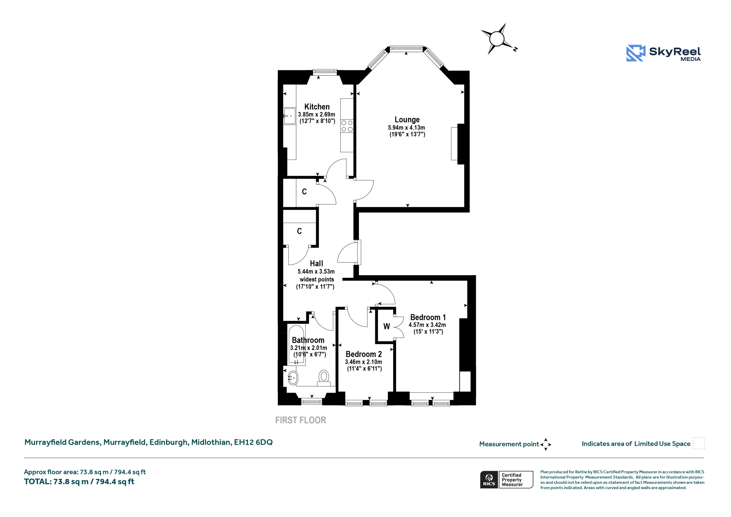 Entered via a secure entry system into a well-maintained shared hallway, the accommodation includes a welcoming entrance hall with two generous walk-in storage cupboards, a sophisticated bay-windowed lounge, and a stylish kitchen complete with integrated appliances. The principal bedroom benefits from a fitted wardrobe, while a second bedroom, ideal as a study or guest room, and a well-appointed bathroom with shower-over-bath complete the layout.