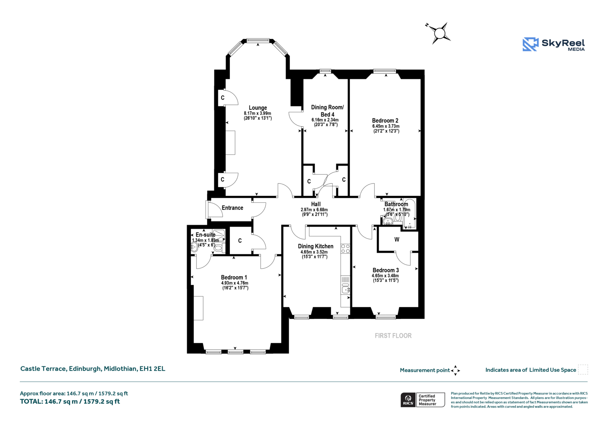 Set in one of Edinburgh’s most iconic addresses, this magnificent four-bedroom first-floor flat on Castle Terrace offers an exceptional opportunity to acquire a spacious city-centre home brimming with period character and potential for modernisation. Occupying approximately 1,579.2 sq.ft, the property forms part of a distinguished traditional tenement and is perfectly positioned to enjoy uninterrupted views of Edinburgh Castle and the historic skyline.