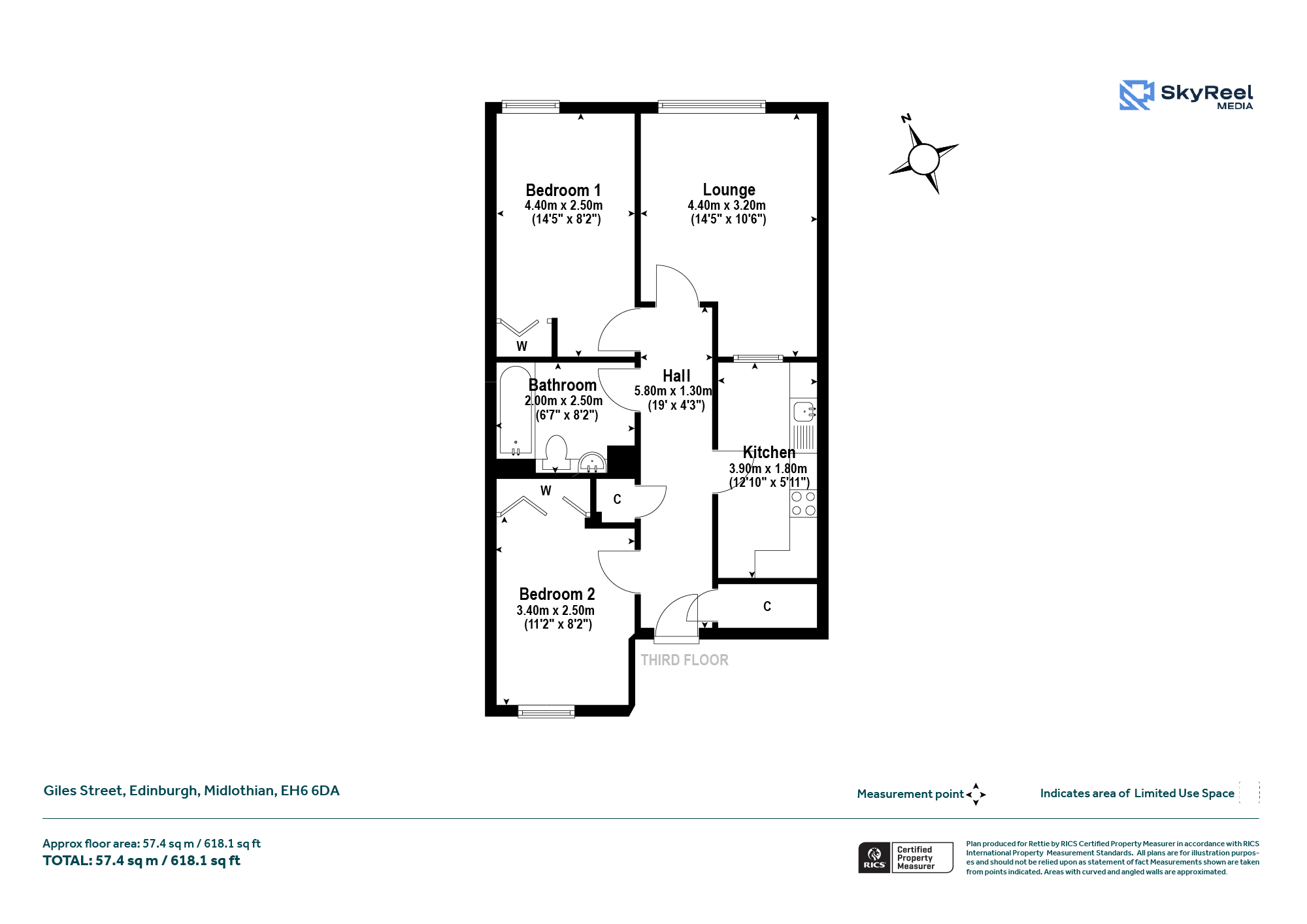 The building is accessed via a secure entry system leading to a clean and well-kept communal entrance, with lift access to all floors, making the property ideal for a wide range of buyers. Internally, the flat is in excellent condition throughout and provides a bright, well-proportioned layout extending to approximately 618 sq ft. A welcoming central hall gives access to all rooms and incorporates useful storage.