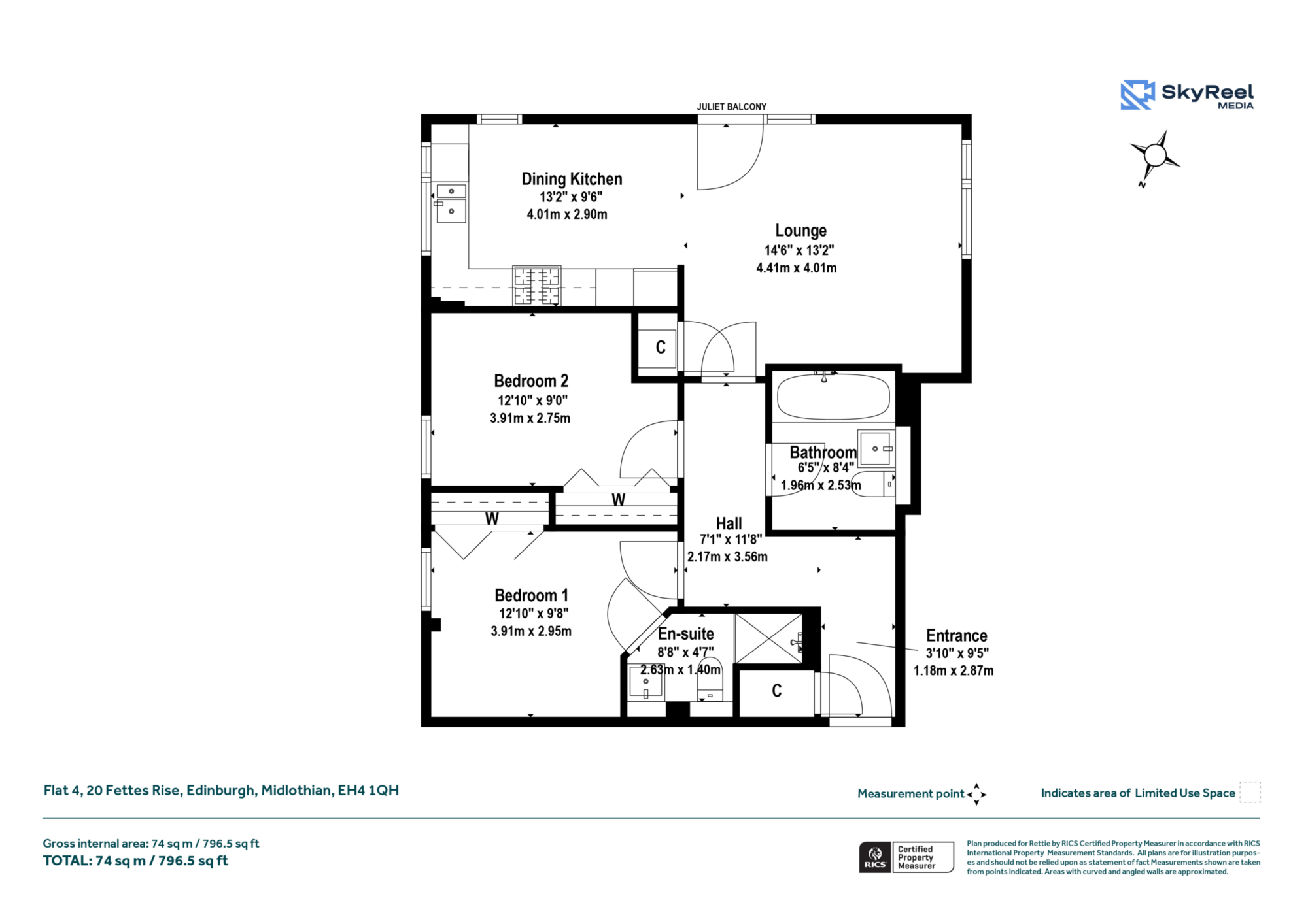 Flat 4, 20 Fettes Rise is an immaculate ground‑floor two‑bedroom, two‑bathroom apartment forming part of a modern and beautifully maintained development in one of Edinburgh’s most desirable residential areas. This stylish home offers a generous and practical layout, beginning with a welcoming entrance hall that provides excellent built‑in storage and leads through to a bright, open lounge. The lounge features a Juliet balcony that brings in natural light and offers a lovely outlook, while flowing seamlessly into a well‑appointed dining kitchen. The kitchen provides excellent worktop and cupboard space, integrated appliances, and ample room for dining, making it ideal for both everyday living and entertaining.