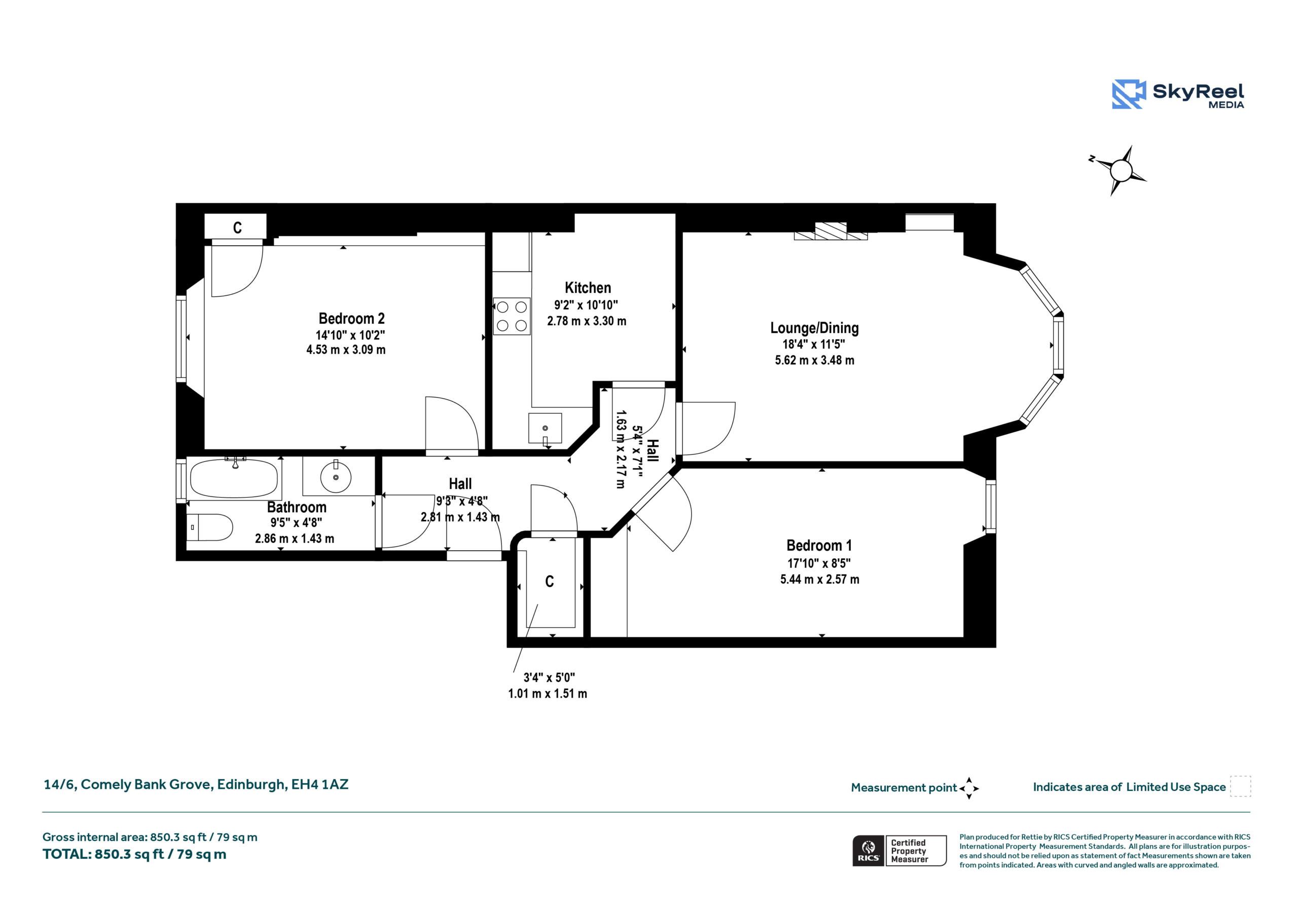 The accommodation is accessed via a well-kept communal stair and opens into a welcoming hallway which connects all rooms. To the front of the property is an attractive bay-windowed living room, a generous and comfortable space with excellent natural light and ample room for both seating and entertaining. A fully fitted internal breakfasting kitchen, two double bedrooms and a modern bathroom with shower over bath.