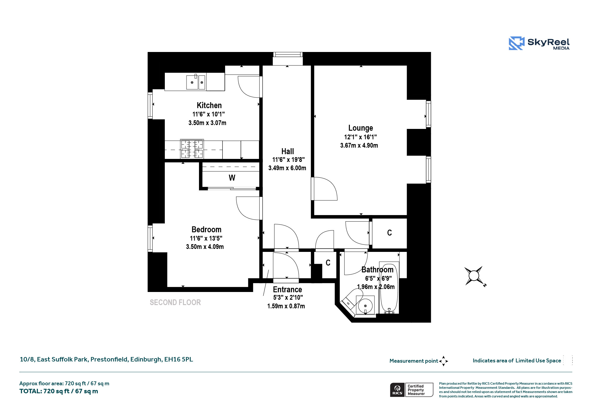 Internally, the flat is in excellent condition throughout and extends to approximately 624 sq ft. A welcoming hall with useful storage leads to all rooms, creating a practical and well-balanced layout.