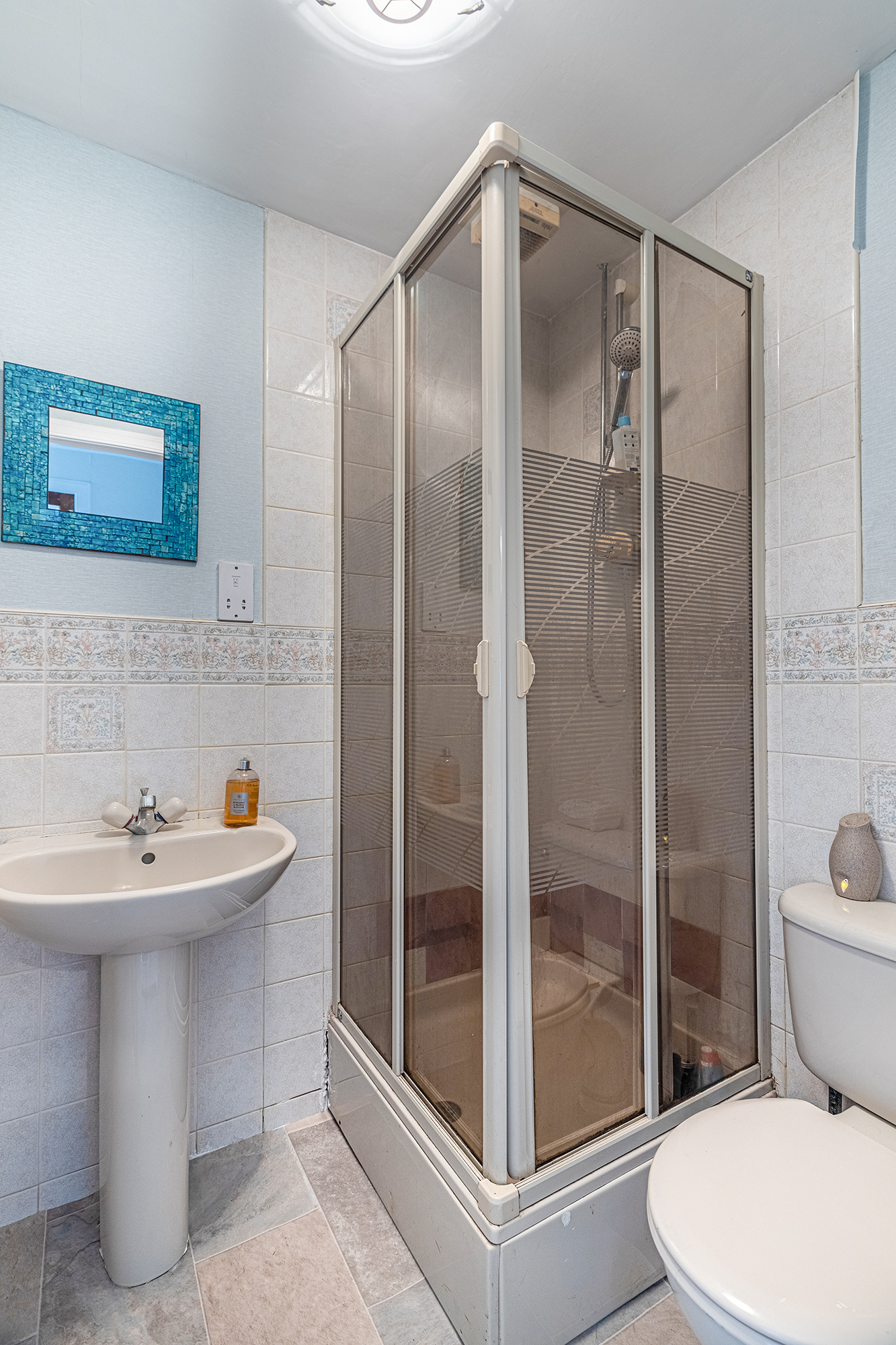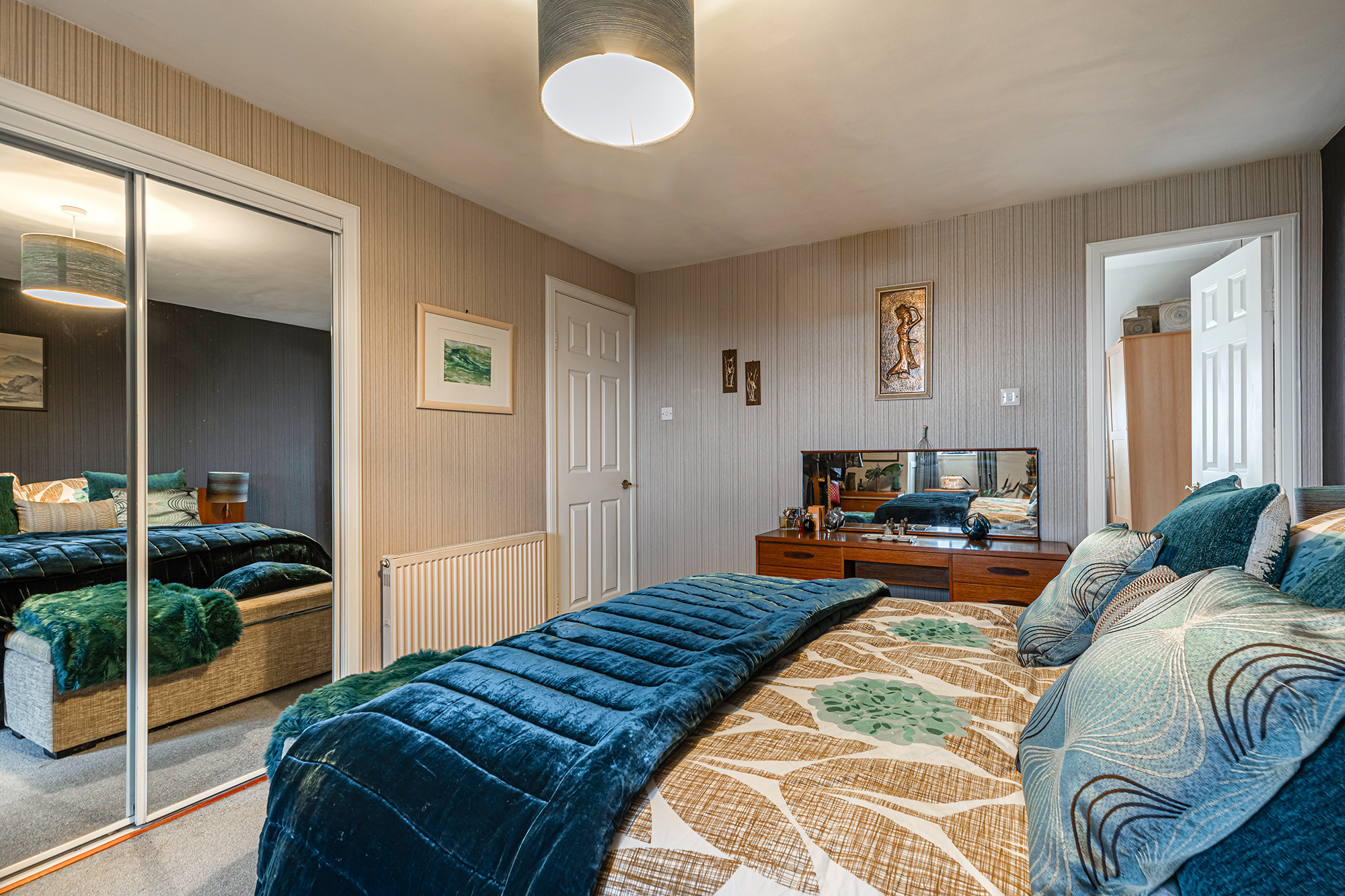 Upstairs, the home offers three further well-proportioned bedrooms, including a large principal suite with built-in wardrobes and a modern ensuite shower room. A family bathroom with a bath completes the upper level.