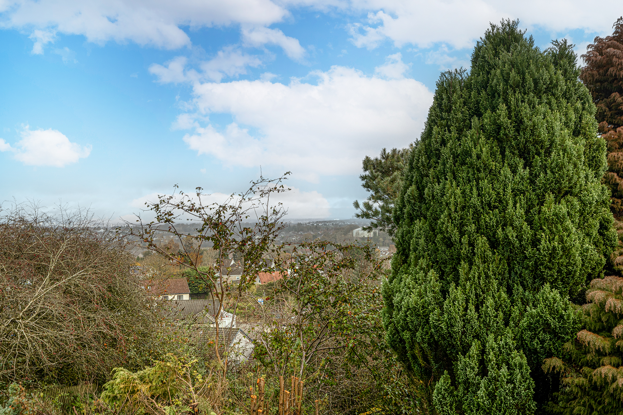 Set on a substantial and enviable plot, the home enjoys outstanding panoramic views over Newton Mearns toward Glasgow, with vistas stretching to Ben Lomond, the Trossachs, and beyond. The mature, well-maintained gardens to the side and rear offer exceptional privacy and present significant potential for extension or further development (subject to necessary consents).