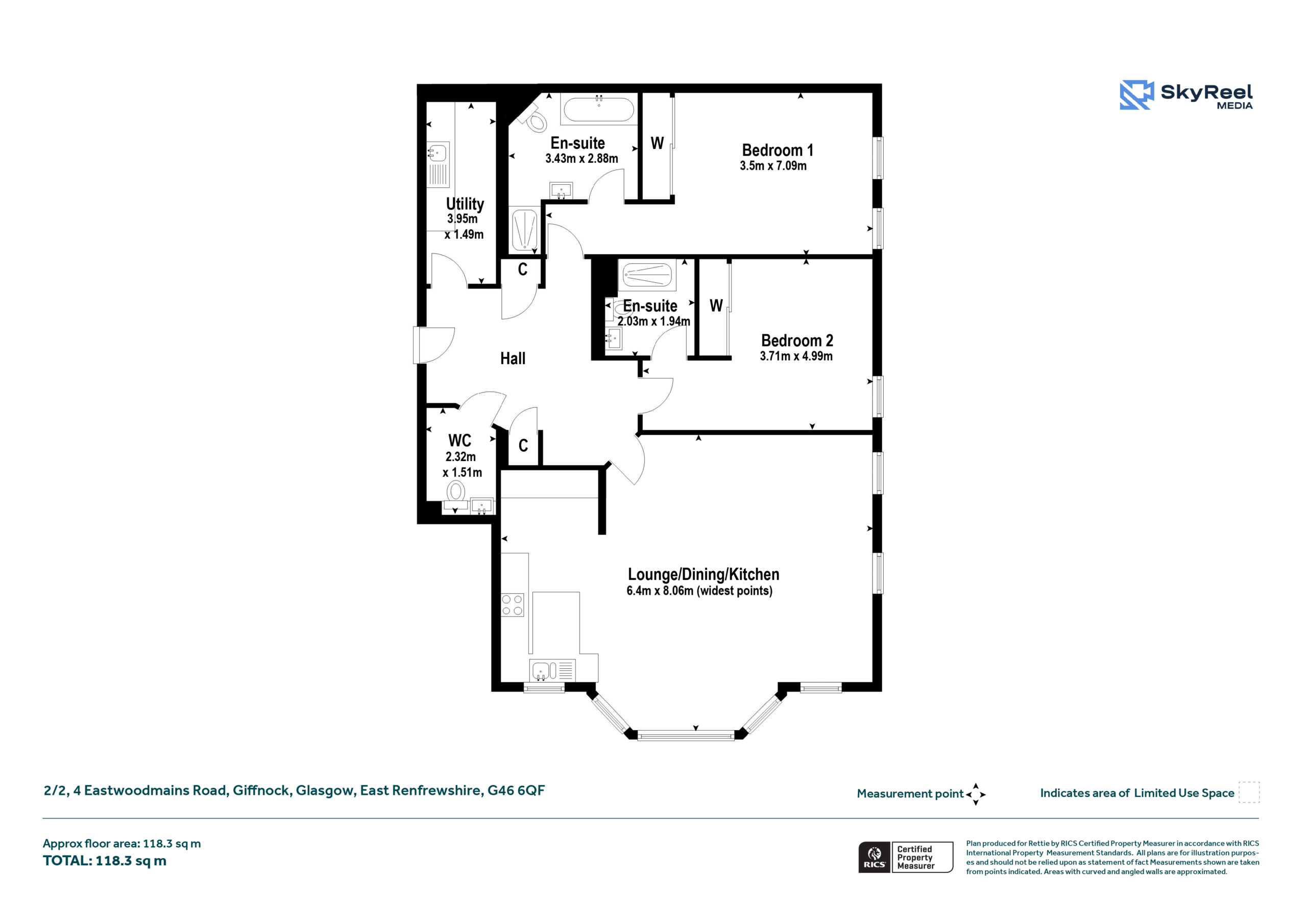 The accommodation is generously proportioned and beautifully presented throughout. A large, welcoming hallway with two storage cupboards leads to a guest WC and a spacious utility room, which in turn provides access to a private, partially floored attic space – ideal for additional storage. The principal bedroom is a luxurious retreat, featuring fitted wardrobes, a double window formation, and a stunning en suite bathroom complete with underfloor heating, a walk-in shower, and built-in television. The second double bedroom also benefits from fitted wardrobes and a stylish en suite shower room. At the heart of the apartment lies the impressive open-plan lounge, dining, and kitchen area. A striking bay window, complemented by a total of seven windows, floods the space with natural light while offering far-reaching views. The kitchen is equipped with an excellent range of wall and base units, integrated appliances, complementary granite worktops, and a breakfast bar – perfect for modern living and entertaining.
