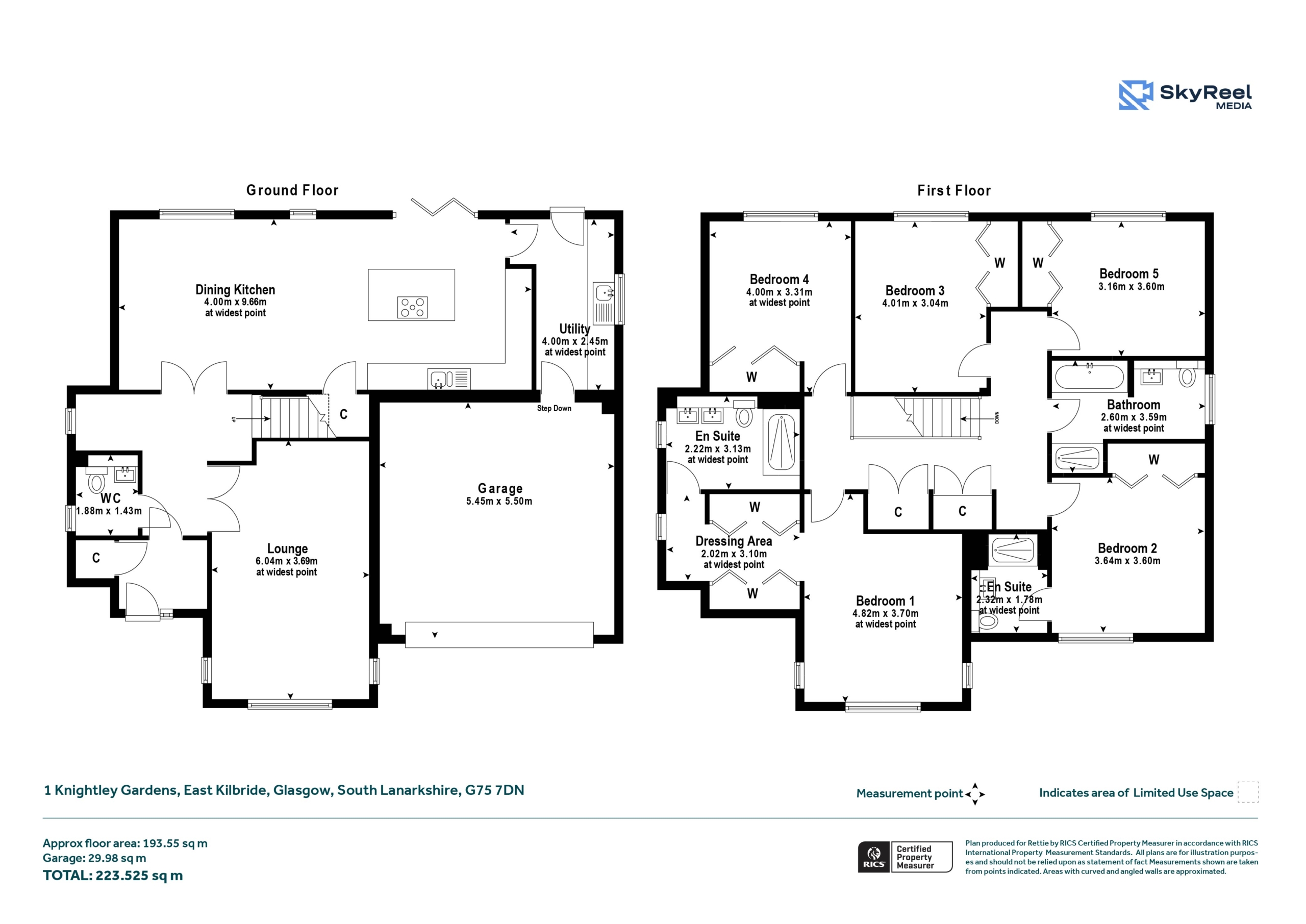 Upstairs, the home continues to impress with five well-proportioned bedrooms arranged around a central galleried landing. The principal suite is a true sanctuary, featuring a spacious bedroom area, a walk-in dressing room with twin wardrobes, and a stylish en-suite bathroom complete with walk-in shower and modern tiling. The second bedroom also benefits from its own private en-suite, making it ideal for guests or older children.