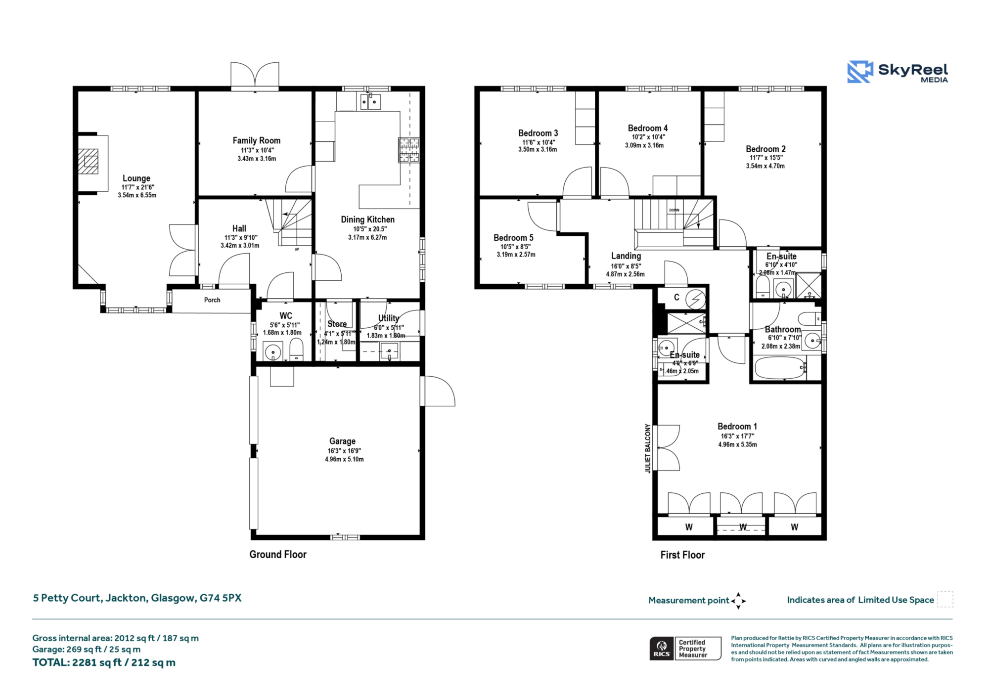 Upstairs, a generous landing leads to five well-proportioned bedrooms. The impressive principal bedroom benefits from fitted wardrobes and a private en-suite shower room. Bedroom two also enjoys its own en-suite, making it ideal for guests or older children.