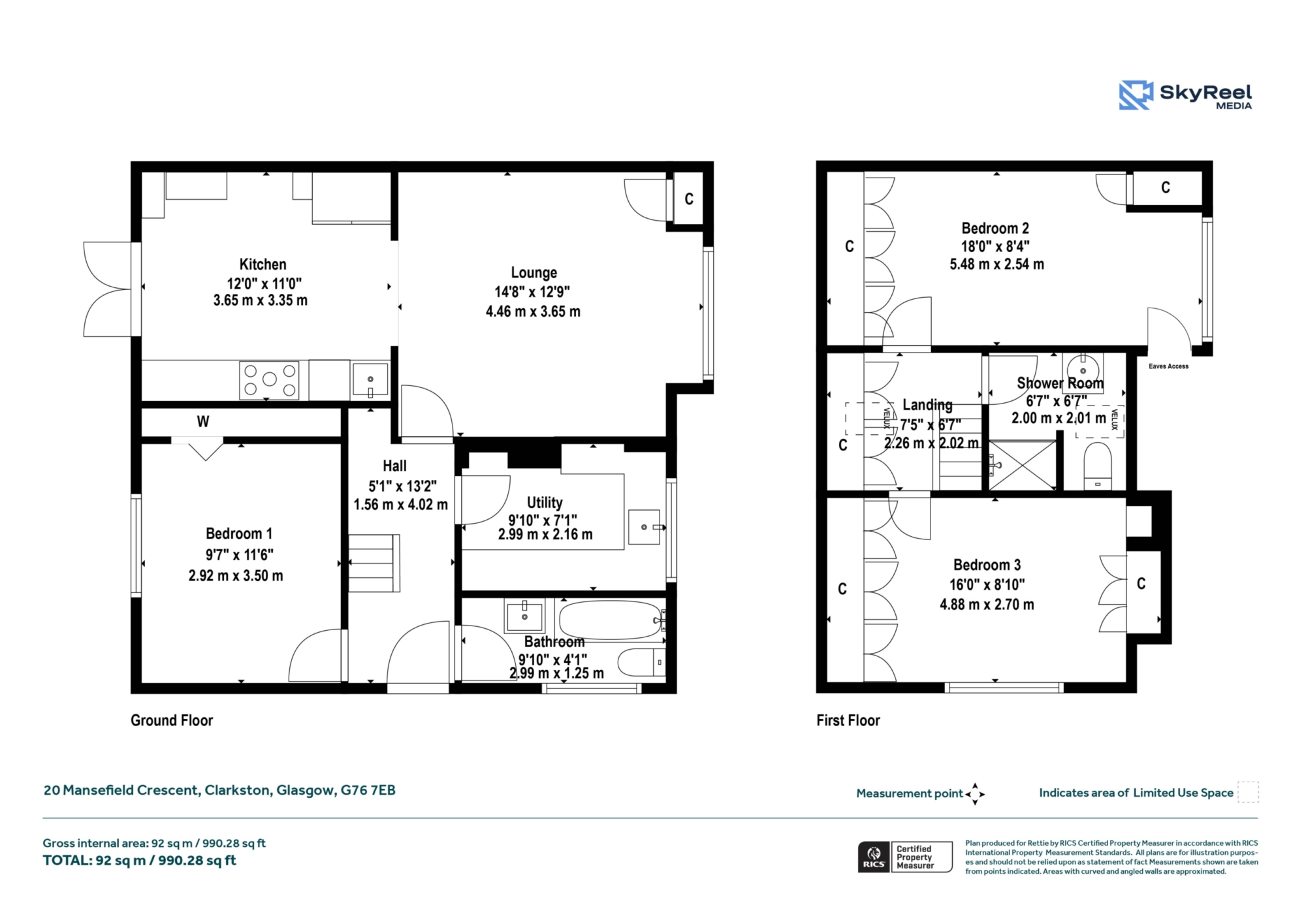 Upstairs features two further large bedrooms with built-in storage, including a particularly impressive principal bedroom, along with a stylish shower room. The upper floor offers plenty of natural light and storage options, with fitted cupboards located off the landing and in each bedroom.