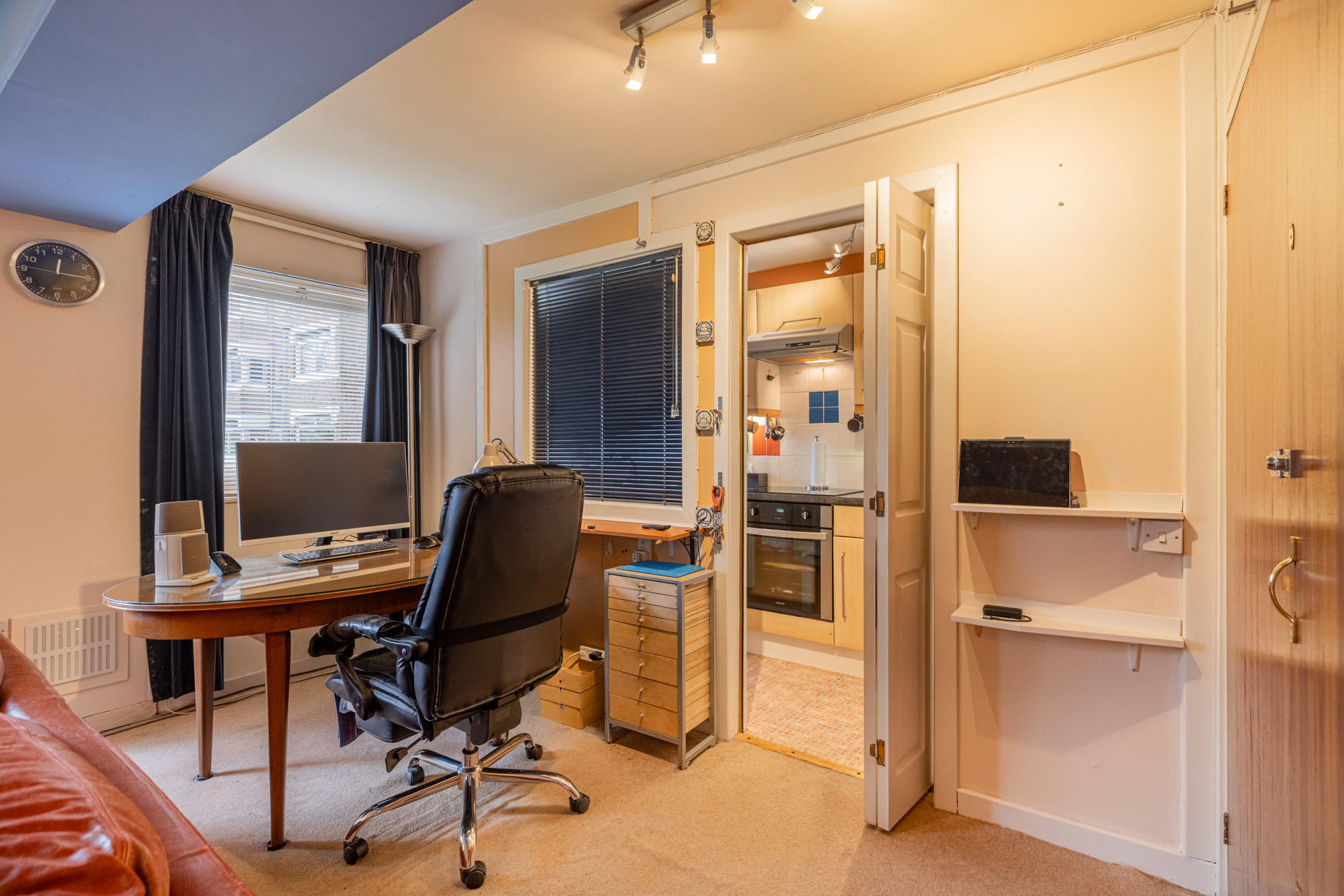 The accommodation of the flat itself comprises welcoming reception hallway, spacious lounge with open aspect out onto the communal gardens, dining area that is currently utilised as a study space with large cupboard off, galley kitchen with a range of base and wall mounted units and cupboard off, double sized bedroom with integrated wardrobes and tiled bathroom with three piece suite.