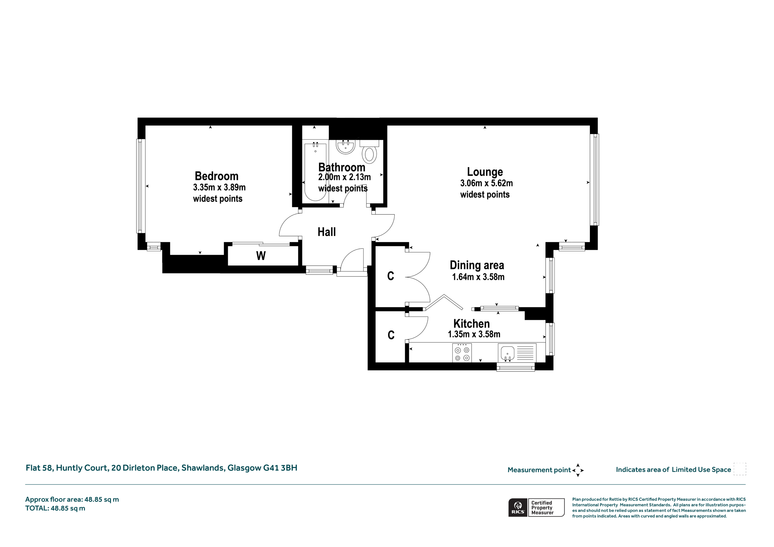 - Any areas, measurements or distances are approximate. Any rooms with coombed ceilings will be measured at floor level and the text will reflect the nature of the ceilings. The text, photographs and plans are for guidance only and are not necessarily comprehensive and it should not be assumed that the property remains as photographed. Any error, omission or mis-statement shall not annul the sale, or entitle any party to compensation or recourse to action at law. It should not be assumed that the property has all necessary planning, building regulation or other consents, including for its current use. Rettie & Co have not tested any services, equipment or facilities. Purchasers must satisfy themselves by inspection or otherwise and ought to seek their own professional advice.