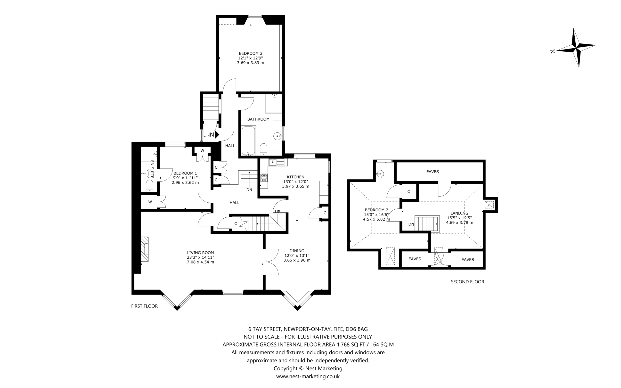 Occupying the upper two floors of an elegant detached Victorian villa, this rarely available three-bedroom home offers stunning River Tay views, a spacious layout, and a delightful blend of period charm and tasteful modern finishes. Accessed via a private side gate leading to the front entrance and garden, the home opens into a welcoming carpeted hallway. Here, a warm and elegant décor is complemented by intricate original cornicing and a striking stained glass feature. A small set of steps, leads to the heart of the home, a generously proportioned living room with soaring ceilings that enhance the wonderful sense of space. Bathed in natural light and enjoying breathtaking river views, this room showcases desirable period details, including an exquisite ceiling rose, built-in press, and a carved mahogany mantle now housing a living flame fireplace. Glazed double doors connect the living room to the impressive dining kitchen, creating an ideal space for family life and entertaining. With dual-aspect windows and panoramic river views, this room is bright and inviting. Wood-inspired flooring and a serene colour palette complement the modern kitchen, which features oak-effect wall and floor units, illuminated worktops, a tiled splashback, and integrated appliances including a gas hob, oven, and extractor hood. Also on this level are two well-presented double bedrooms, both with plush carpeting. The principal double bedroom benefits from built-in storage and a sleek en-suite shower room. A contemporary family bathroom completes this floor, featuring a bath, separate shower enclosure, WC, and washbasin built into vanity. The upper floor hosts a spacious and tranquil third double bedroom with carpeting, a built-in cupboard, and access to useful eaves storage, offering a peaceful retreat with added practicality. The property further benefits from gas central heating.