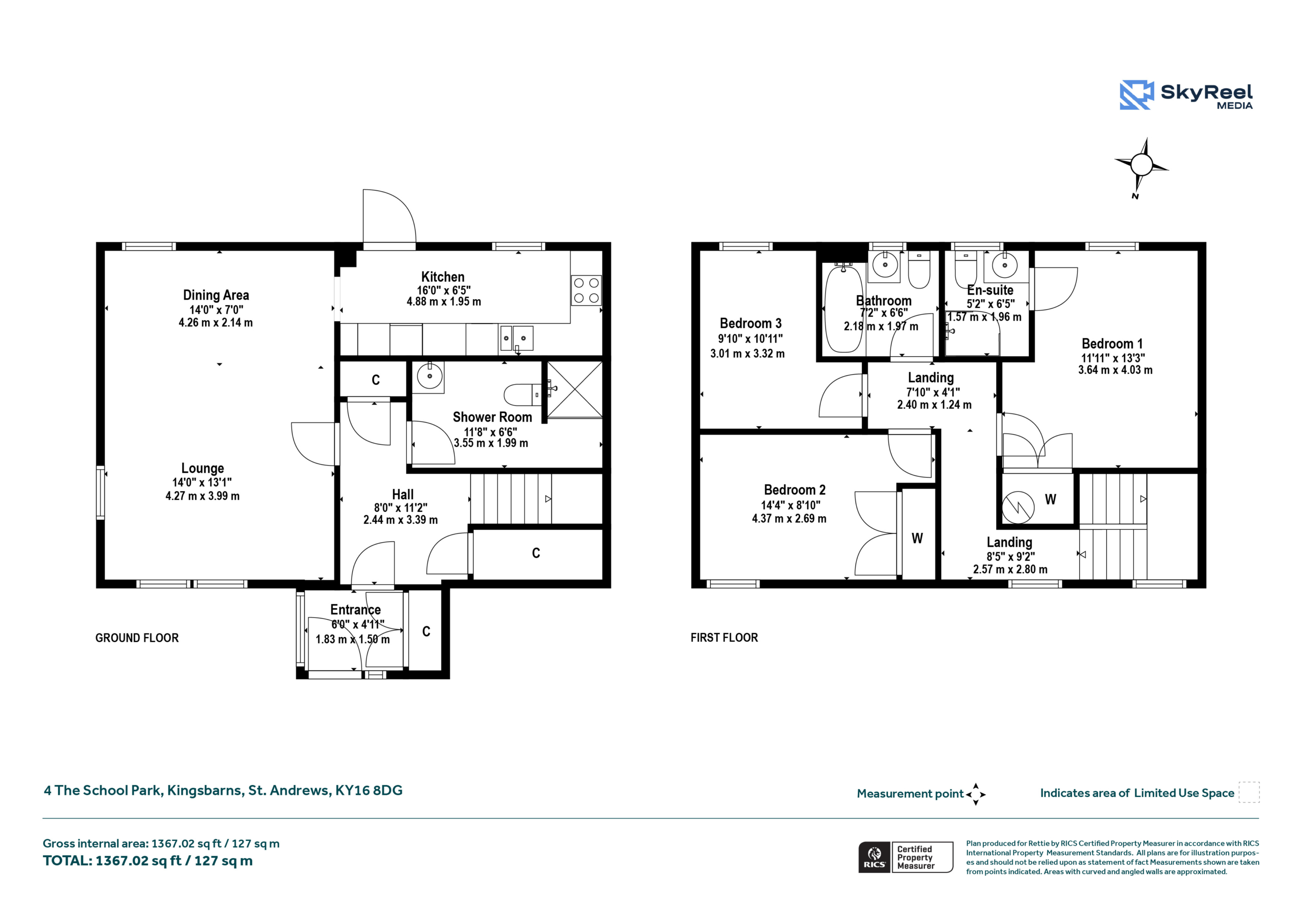 Upstairs, bedroom one benefits from built‑in wardrobes and a stylish en‑suite shower room. Two further generous bedrooms, one with built‑in storage, are served by a contemporary family bathroom.