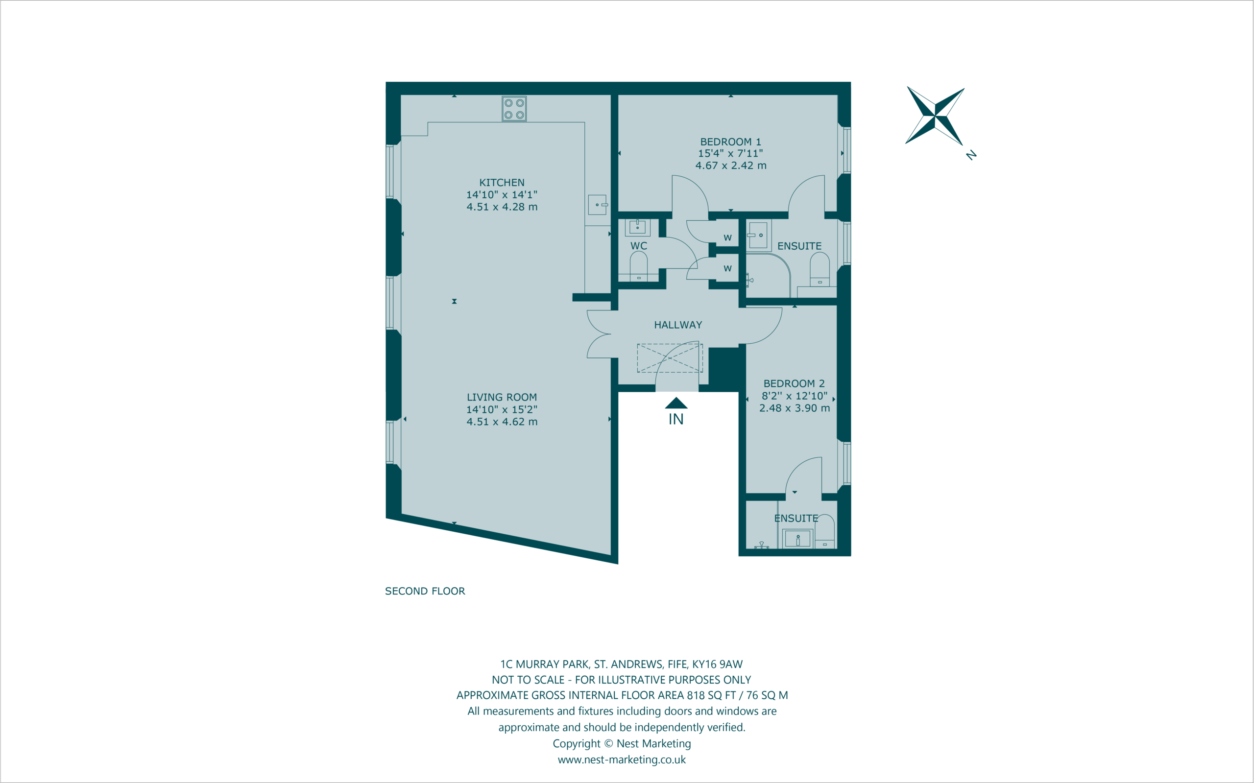 Nestled within the prestigious St Andrews Conservation Area, this second-floor two-bedroom apartment has been beautifully renovated, showcasing a refined interior design throughout, superior finishes and a meticulous attention to detail. A welcoming entrance foyer, elegantly appointed with handsome wooden flooring and a soft, sophisticated colour palette, leads through French doors into a stunning open-plan living room and kitchen. Bathed in natural light from south-east-facing triple windows and continuing the foyer’s tasteful aesthetic, this space is perfect for stylish entertaining and relaxed everyday living. Stretching the full length of the home, the living area offers flexibility in layout, easily accommodating a generous seating arrangement. The kitchen, thoughtfully designed in an L-shape, incorporates a dining area and showcases bespoke wall and floor cabinetry, sleek illuminated white stone worktops, and high-spec integrated appliances, including an eye-level oven, grill, and hob. Both bright double bedrooms are finished to a high standard, each complemented by a luxurious en-suite shower room. These feature contemporary fittings including hidden cistern WCs, wall-hung vanities with built-in washbasins, and chrome heated towel radiators. A guest WC completes the accommodation.