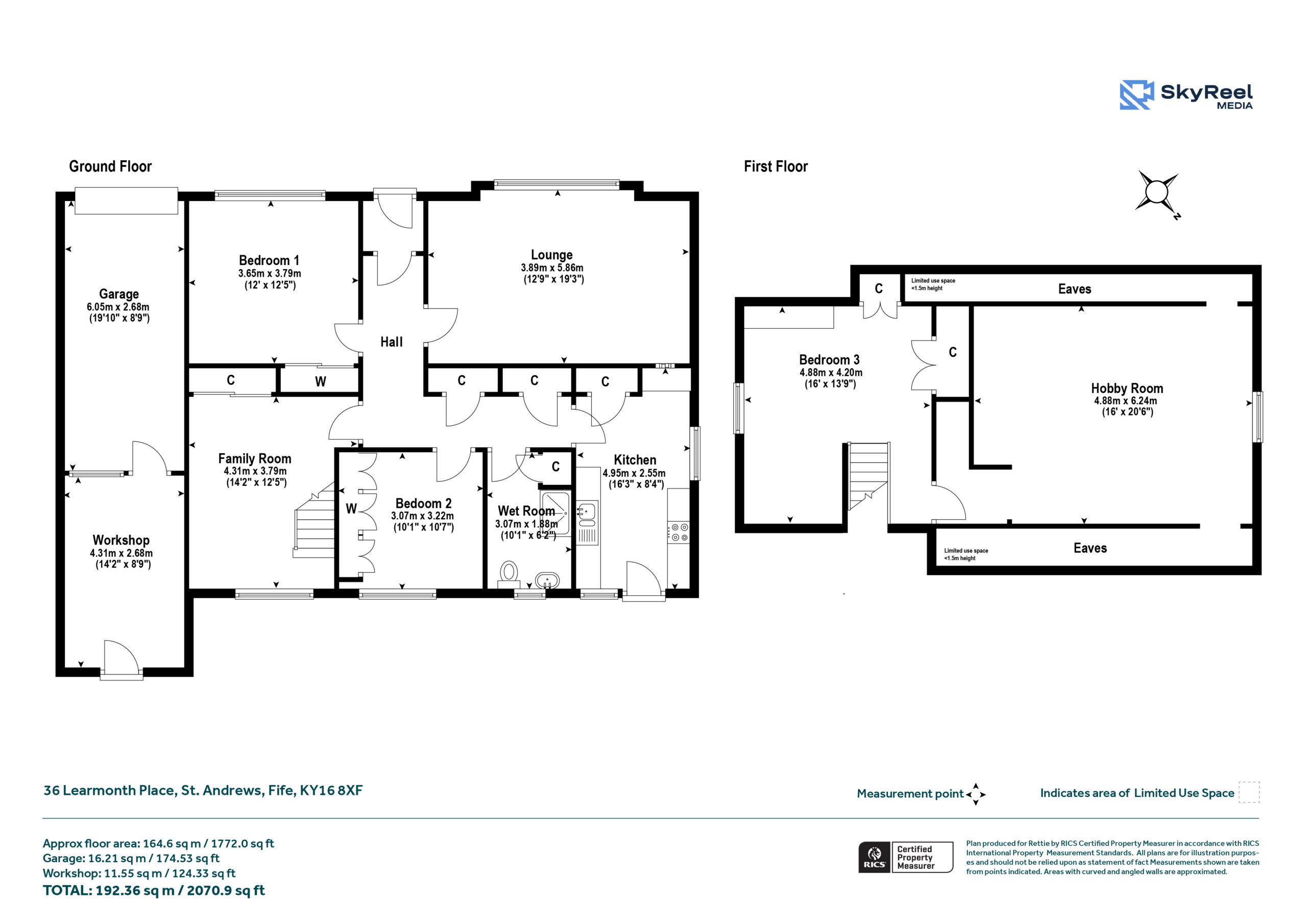 Two double bedrooms with built-in storage are also located on the ground floor, alongside a practical wet room and a comfortable family room with leafy garden views. From here, a staircase rises to the upper level, which offers extensive potential to be upgraded into additional bedrooms or versatile living space.