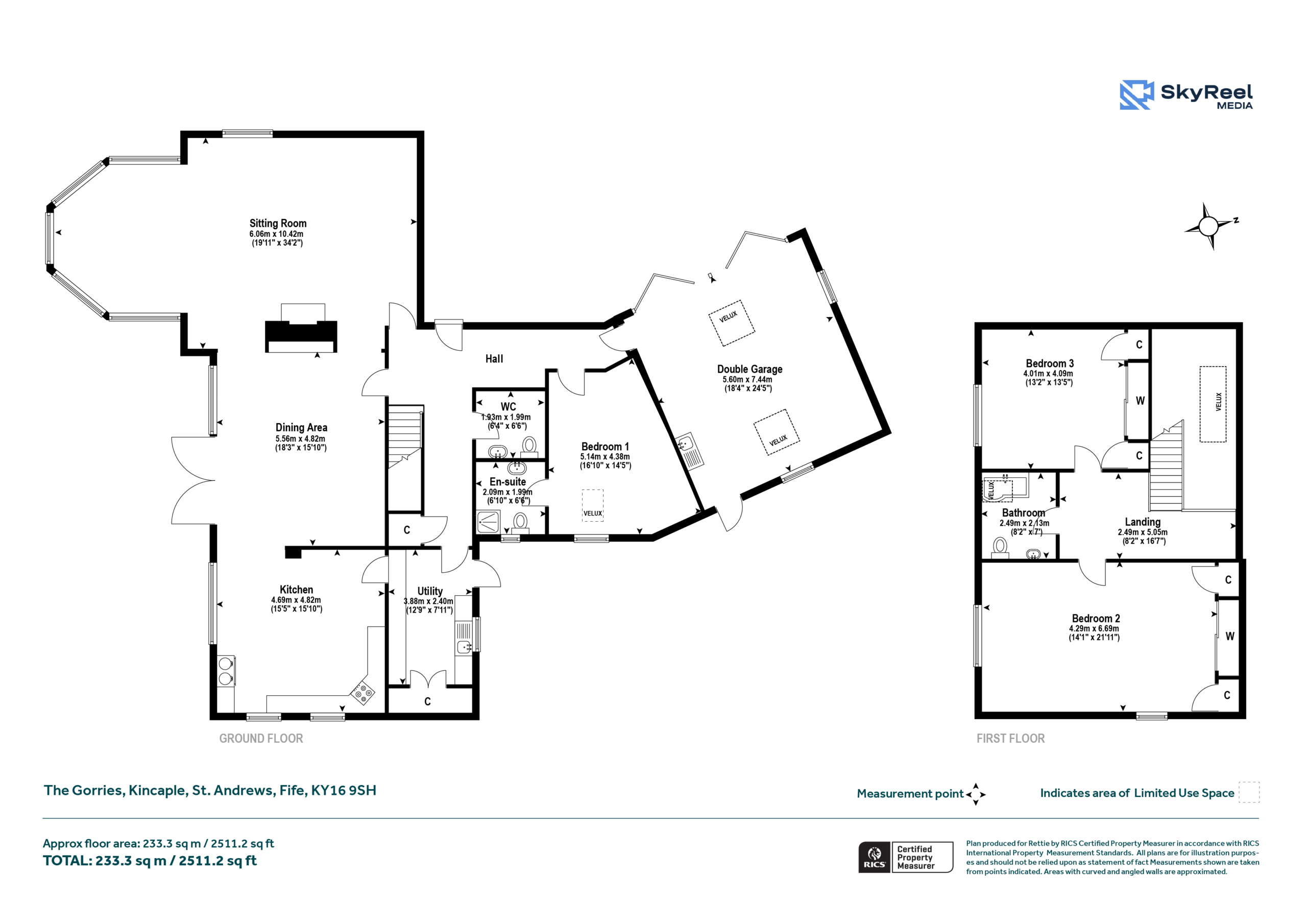 The large double garage, fitted with bi-fold and roller doors, Velux windows, built-in shelving, and a sink, provides excellent space for vehicles, storage, or creative pursuits.