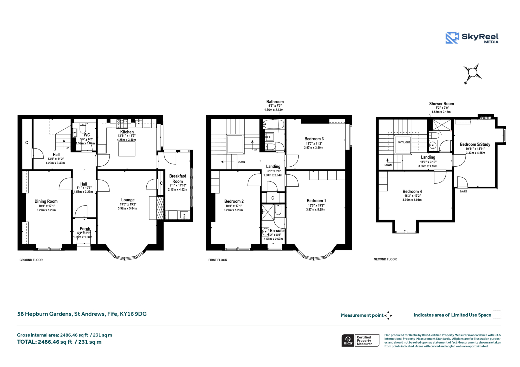 A grand spiralling staircase forms the architectural centrepiece of the home, rising through all three levels and illuminated by a large skylight at the top floor, ensuring natural light cascades throughout. Across the first and second floors are four generous double bedrooms, three of which feature luxurious fitted wardrobes with internal lighting. Bedroom one benefits from an en‑suite shower room, while a further versatile second‑floor room offers ideal space for a fifth bedroom, home office, or study. The accommodation is completed by two additional contemporary shower rooms and a stylish family bathroom. The property’s scale, finish, and flow combine to create an exceptional family home in one of St Andrews’ most coveted addresses.