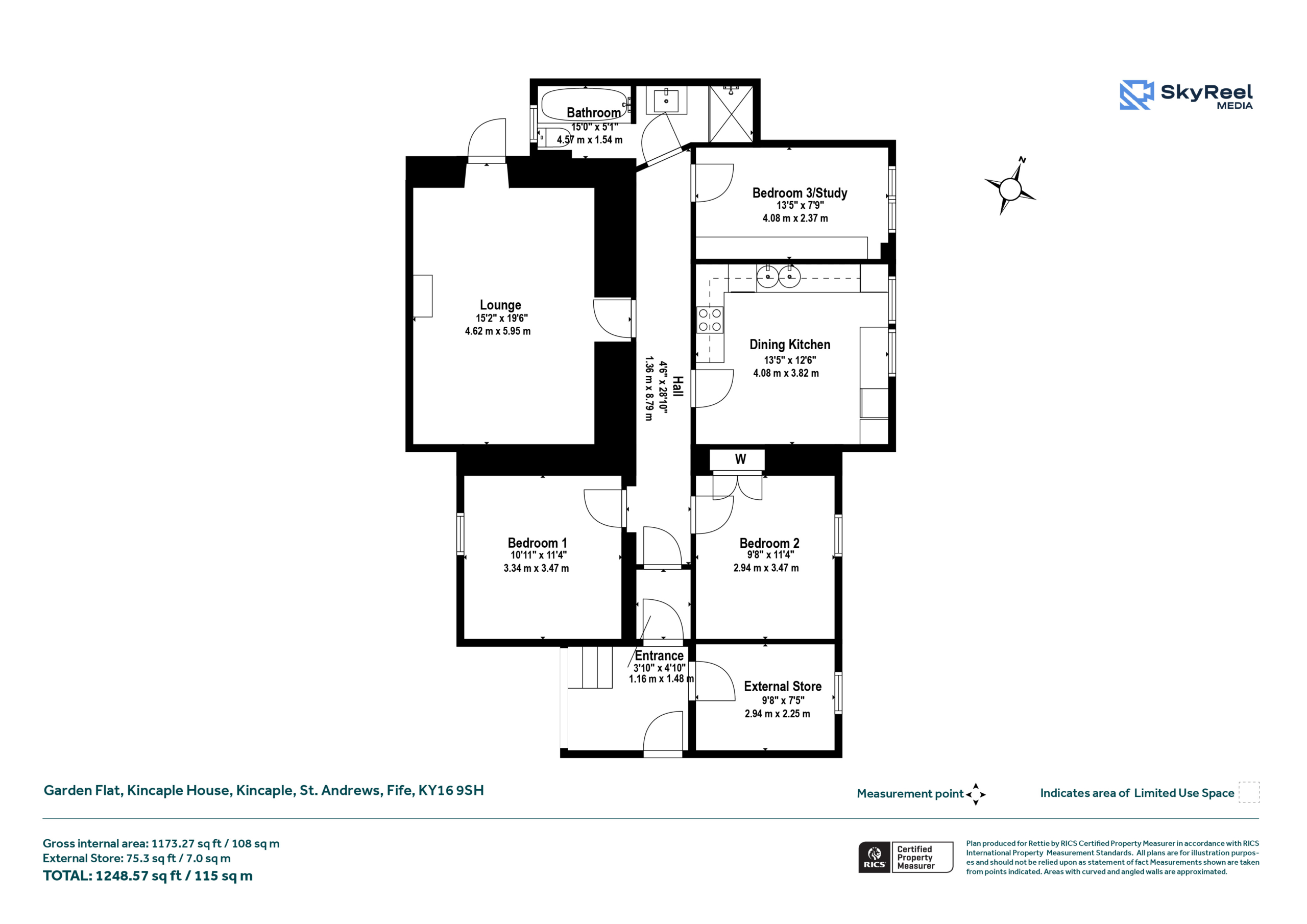 Occupying the lower ground floor of the southeast wing, the garden flat is accessed via an external flight of steps leading to the front door. The accommodation includes a spacious lounge with a gas fire and French door opening to a patio, a dining kitchen, three bedrooms and a well-appointed bathroom. A useful external store cupboard sits directly opposite the entrance within the communal hall. Shared garden grounds, used by only two other properties, provide a pleasant lawned area bordered by hedging and the driveway.