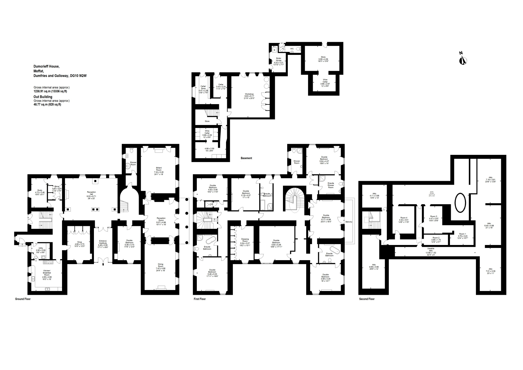 Dumcrieff House presents a unique historical opportunity, having been originally enlarged and reconfigured in the late 18th century by Dr. Rogerson, personal advisor and private physician to Catherine the Great. The house comprises eight spacious bedrooms and a variety of formal and informal reception rooms, providing extensive and versatile accommodation suitable for both grand entertaining and family living. Accommodation is arranged over three main levels, with an additional extensive basement housing a traditional wine cellar, workshop, and various storage areas.