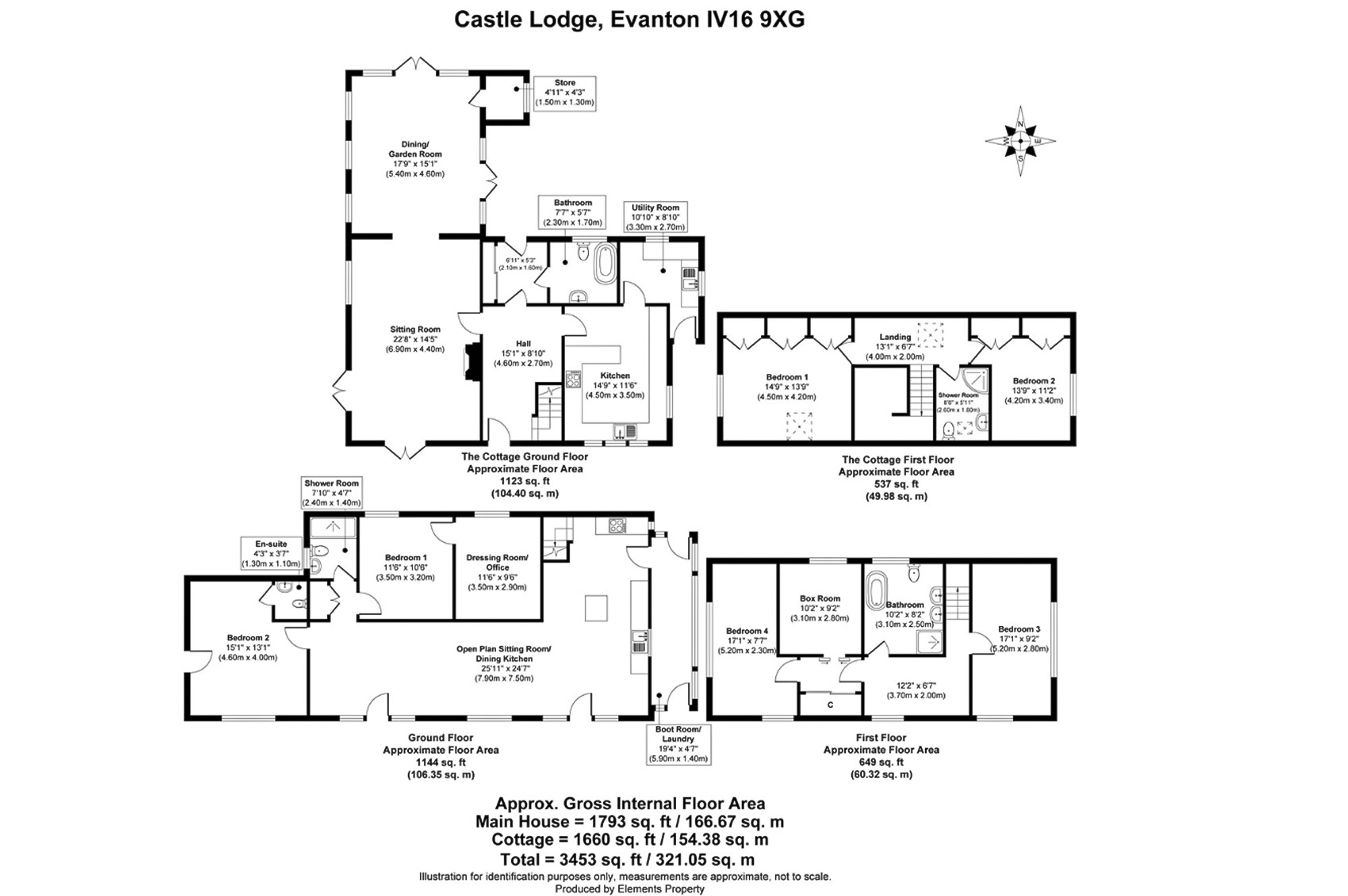 The principal house is particularly well arranged, centred around an impressive open plan kitchen, dining and sitting room, designed for modern family living and entertaining. The ground floor also includes a principal bedroom suite with dressing room or study, a further en suite bedroom, shower room and a well-appointed boot room/laundry. The first floor provides two additional bedrooms, a family bathroom and a box room.